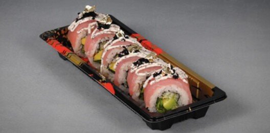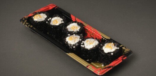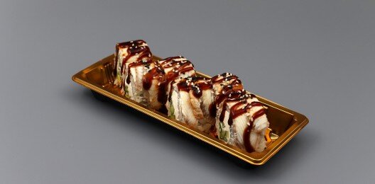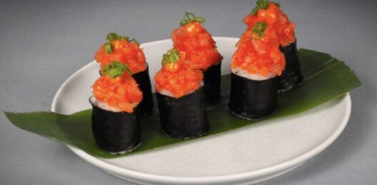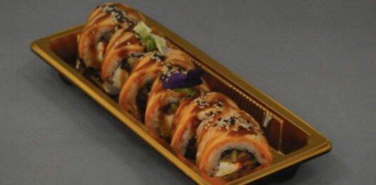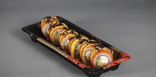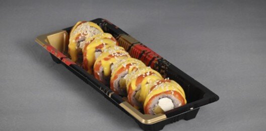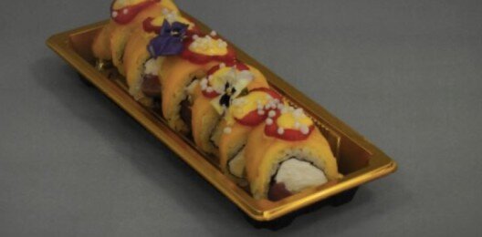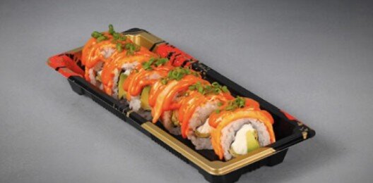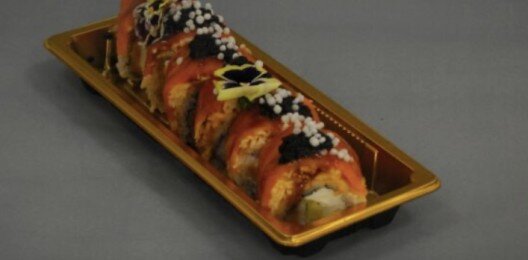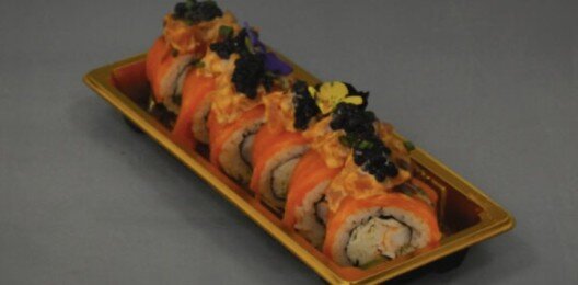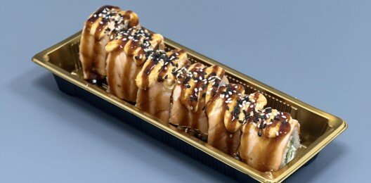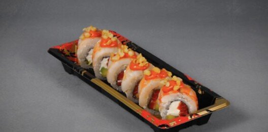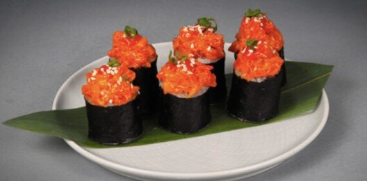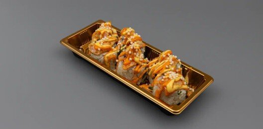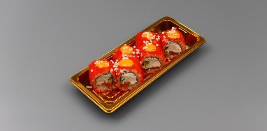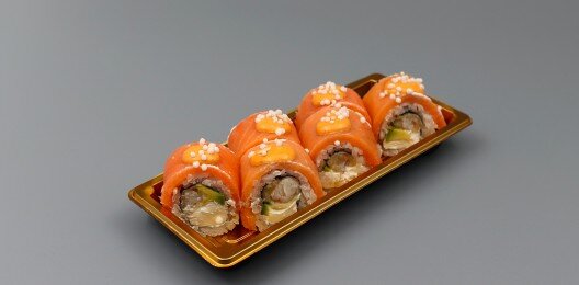 Нори, рис, краб, манго, авокадо, тобика ,сыр твороженный Цвет тобики может меняться