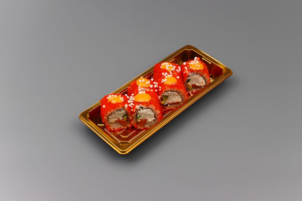 Нори, рис, краб, лосось, тобико, сыр твороженный, авакадо (цвет может меняться)