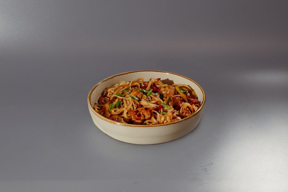 Лапша, курица, болгарский перец, пекинская капуста, лук, зеленый лук