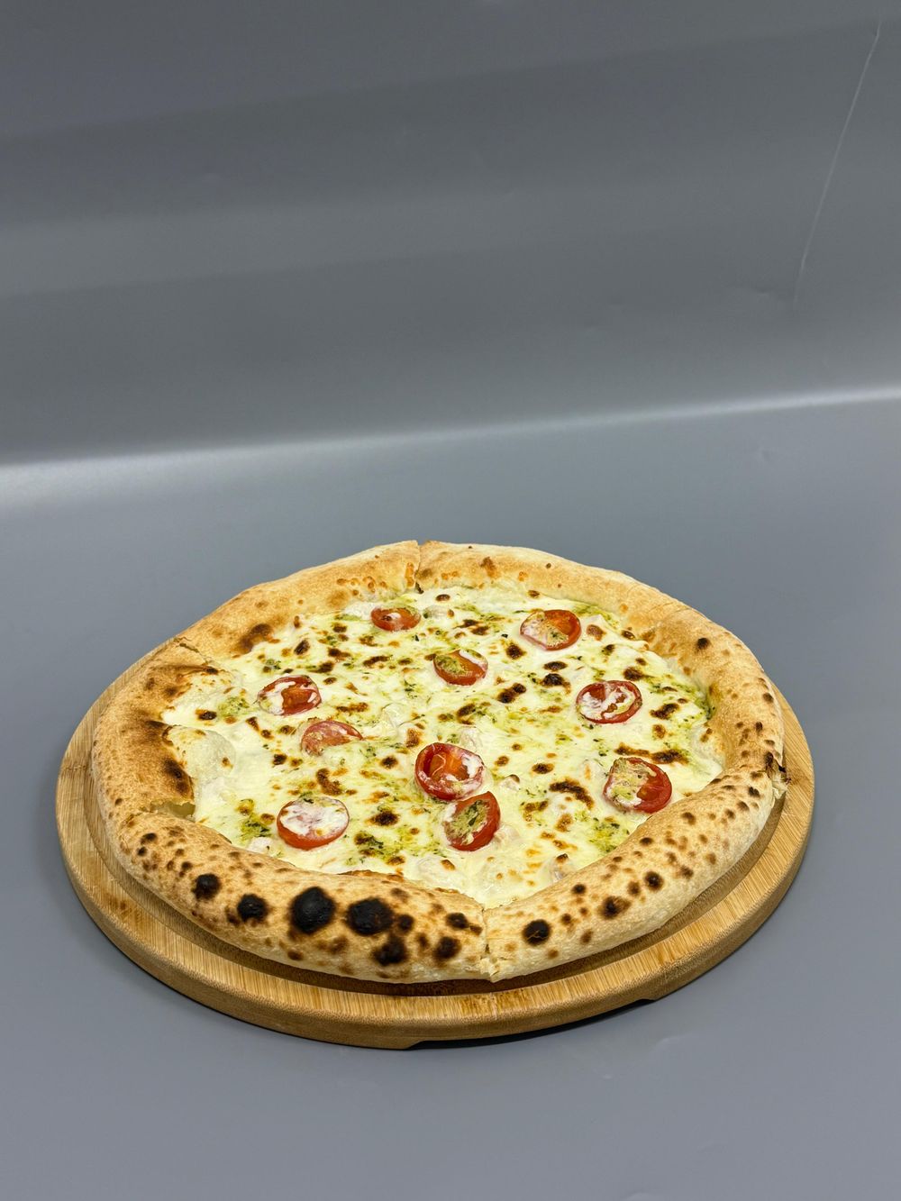 Курица, соус песто, помидор черри, сыр, соус альфредо