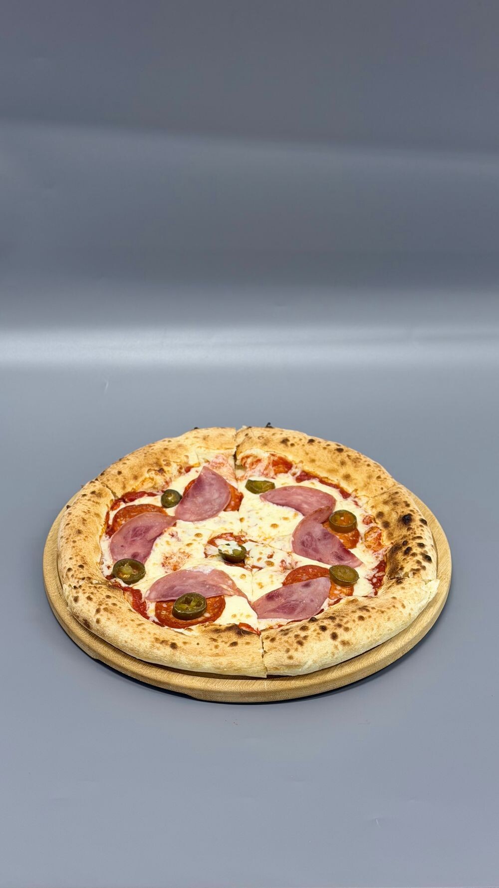 моцарелла, соус томатный, салями, ветчина, халапеньо