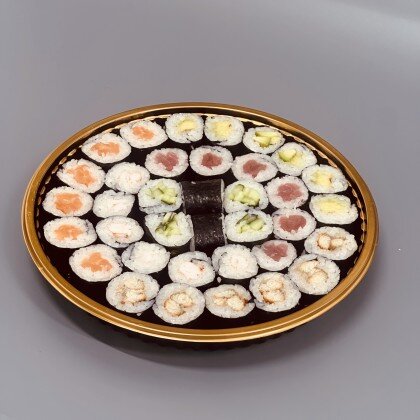 Филадельфия, Маки лосось чука, Калифорния блэк, Черный ролл тунец, Красный ролл креветка миндаль 30 шт Цвет риса и тобики может меняться