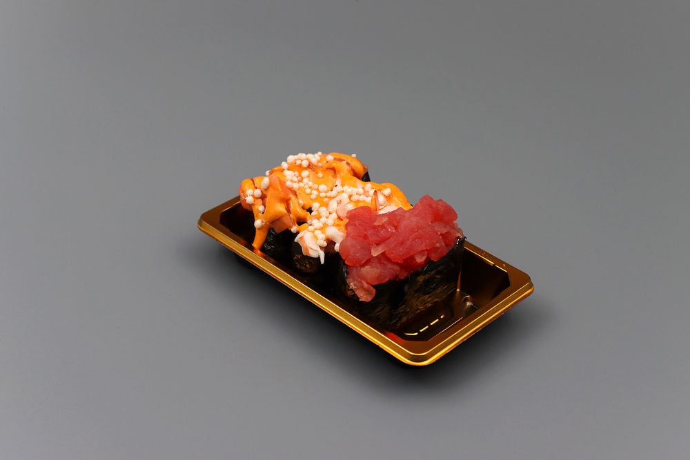 Гункан креветка, Гункан лосось спайси, Гункан с тунцом и трюфельной пастой - 3 шт