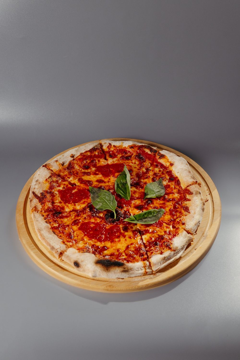 Томатный соус, сыр моцарелла, свежие листья базилика