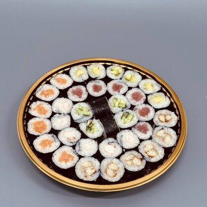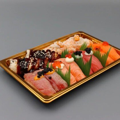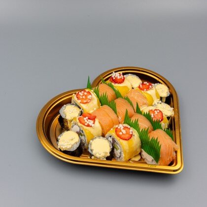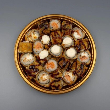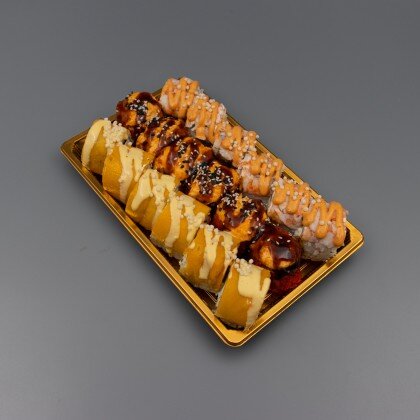 Ролл креветка темпура ,Ролл авокадо с крабом и креветкой ,Маки угорь с бобами ,Суши лосось 3 штук Суши тунец 2 штук
