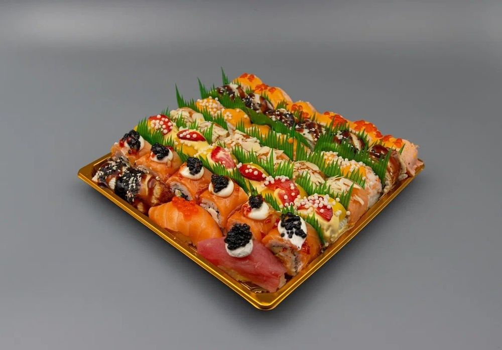 Филадельфия карамель. жара, Филадельфия апельсин, Филадельфия с копченным угрем, Сливочная креветка, Опаленный лосось, Суши лосось с икрой, Суши тунец с трюфельным соусом, Суши угорь