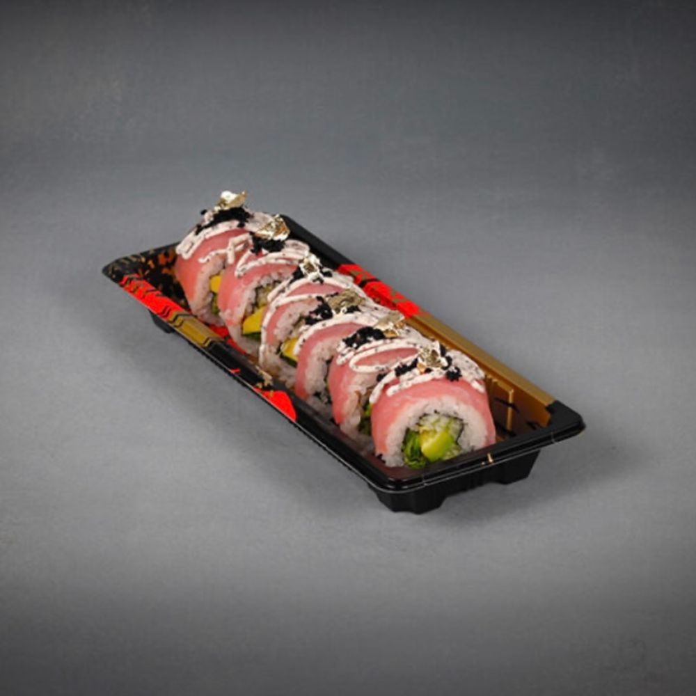 Нори, рис, тунец, авокадо, огурец, соус "Трюфельный", кунжут, пищевое золото