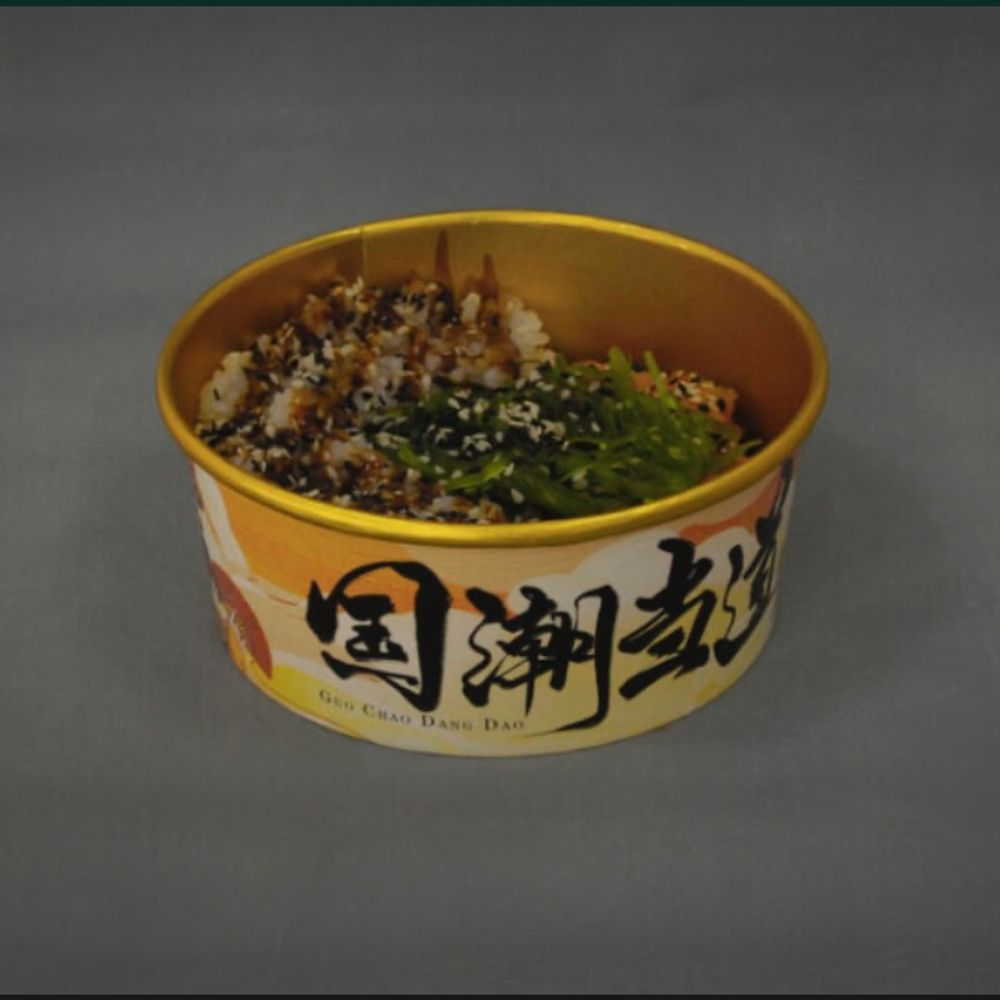 Креветки темпура, салат чука, кисло-сладкий соус, рис и кунжут