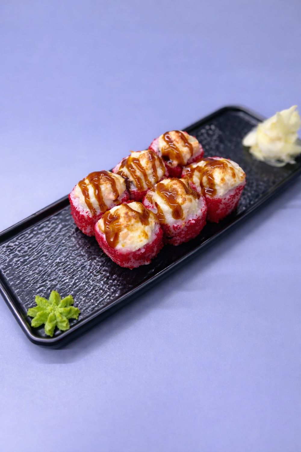 Нори, рис, огурцы, сыр, тобико, унаги соус, кунжут