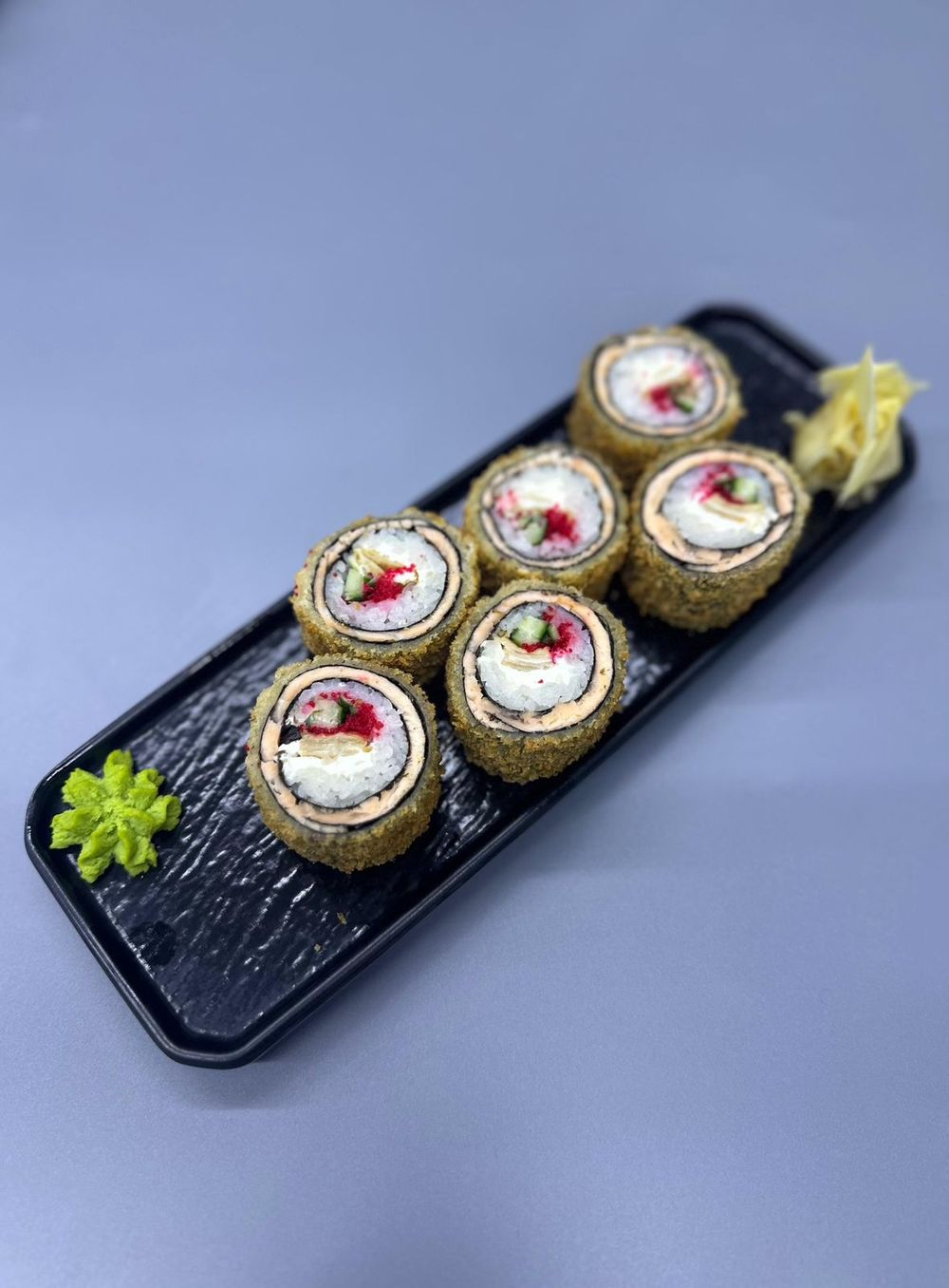 Нори, рис, сыр, тамаго, тобико, огурцы, лосось